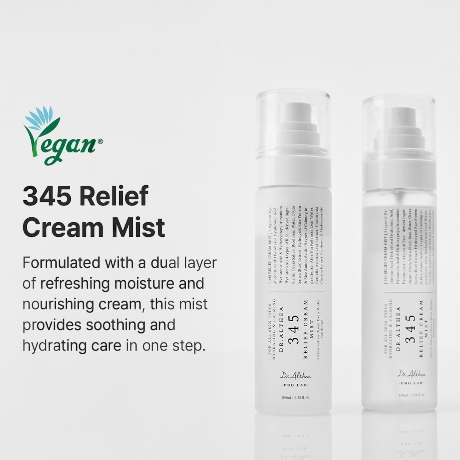 Dr. Althea 345 Relief Cream Mist is a lightweight, soothing skincare mist designed to provide instant hydration and comfort to the skin. Its unique cream-in-mist formula delivers moisture while helping to calm and refresh the skin throughout the day.
